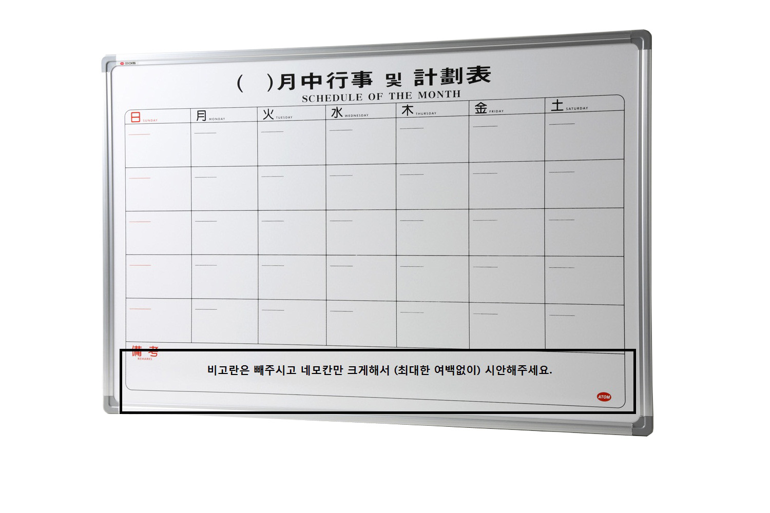 HOME > 제품소개 > 기기,보드,이젤 > 월중행사표