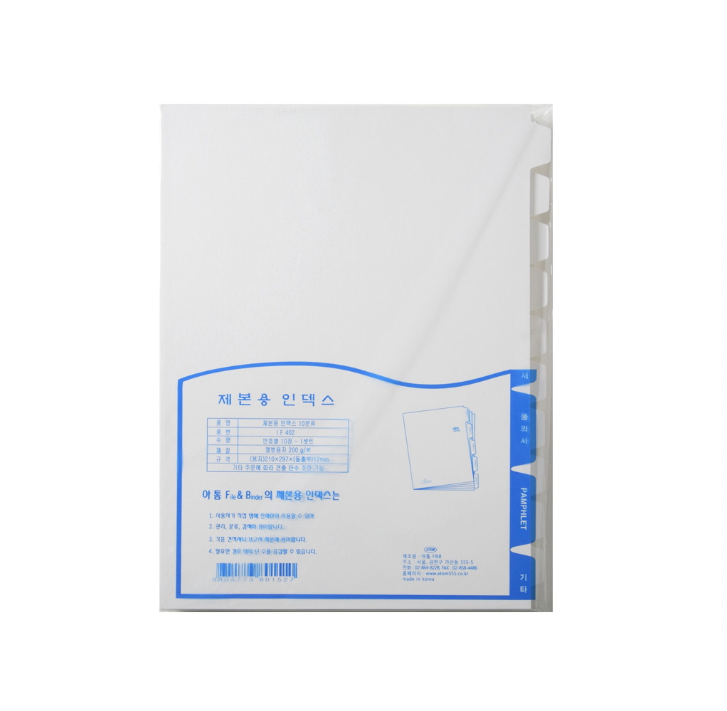 제본용 인덱스 10분류, 5분류 (무지)