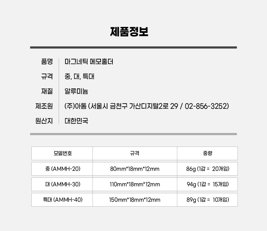 제품명 : 마그네틱(자석) 메모홀더 (특대,대,중)